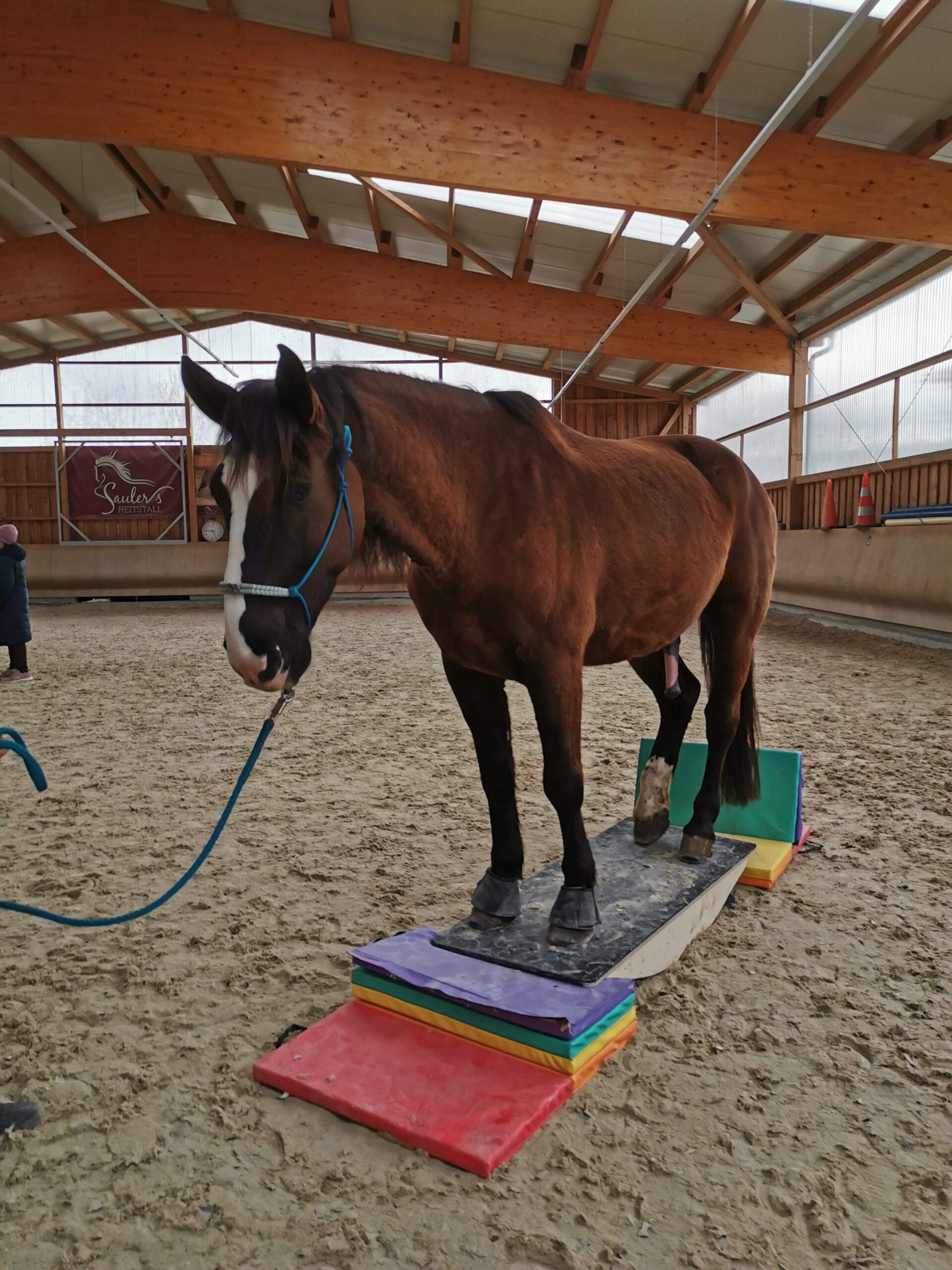Wenn dein Pferd Vorerkrankungen, insbesondere des Bewegungsapparats, wie beispielsweise einen Sehnenschaden, Arthrose (Spat, Hufrollensyndrom..) hat, solltest du vor dem Wippentraining mit deiner Tierärztin oder deinem Pferdephysio-/Osteotherapeuten sprechen. Wichtig ist es auch, jederzeit auf eine korrekte und sichere Ausführung des Wippentrainings zu achten, zum Beispiel, dass das Pferd die Wippe kontrolliert betritt und die Gelenke beim Wippen durchgedrückt lässt. Wenn du weitere Fragen an uns hast, melde dich gerne jederzeit! Medizinischen Rat kann dir aber selbstverständlich nur ein Ansprechpartner vor Ort geben.